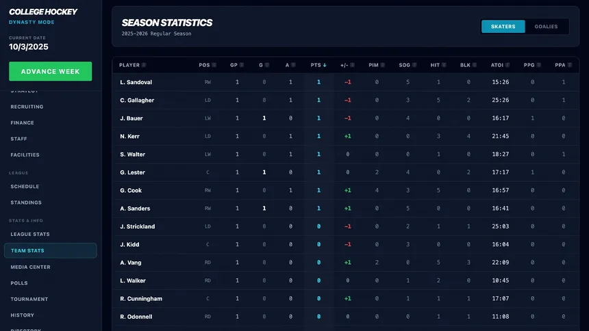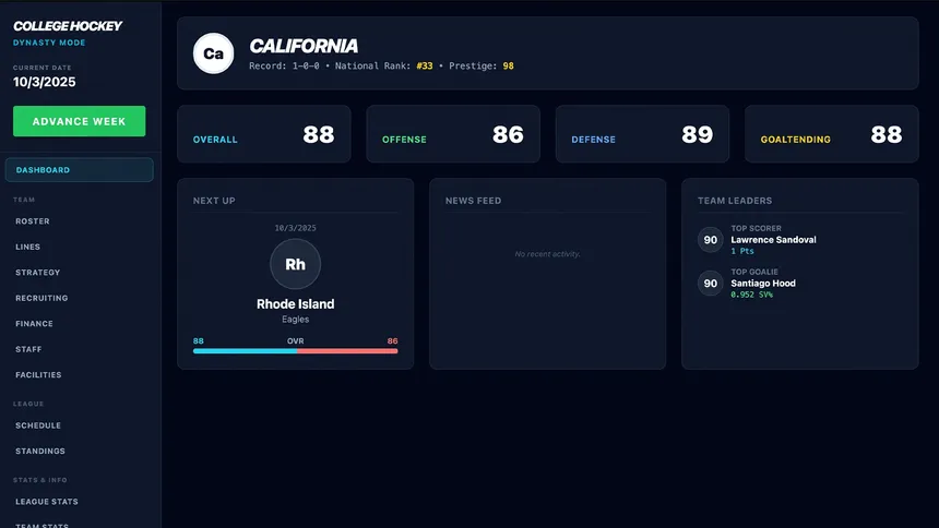 College Hockey 26 is a deep college hockey management simulator where you recruit top prospects, build your roster, and chase national championships.