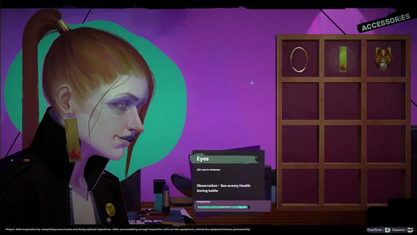A Visual narrative about overcoming the status quo, Fight in a series of different Arenas Levels, In your downtime cook different meals with unique effects and craft equipment to increase your chances.