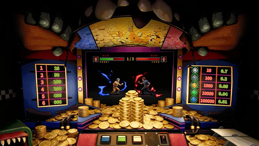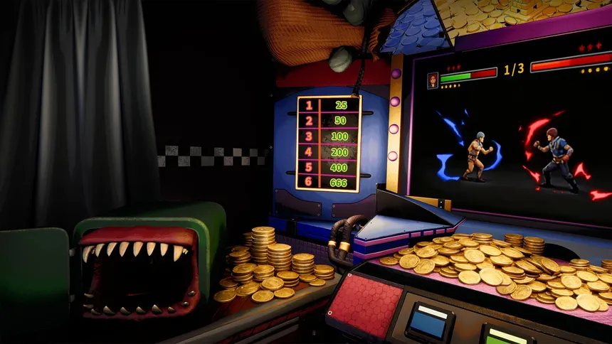 CoinPit is a dark game that blends roguelike strategy with coin pusher thrills. Trapped in a never-closing, dimly lit bar, your escape lies in the coin pusher—stack shiny towers, spin the lucky wheel, and shake the machine until the coins spill out.