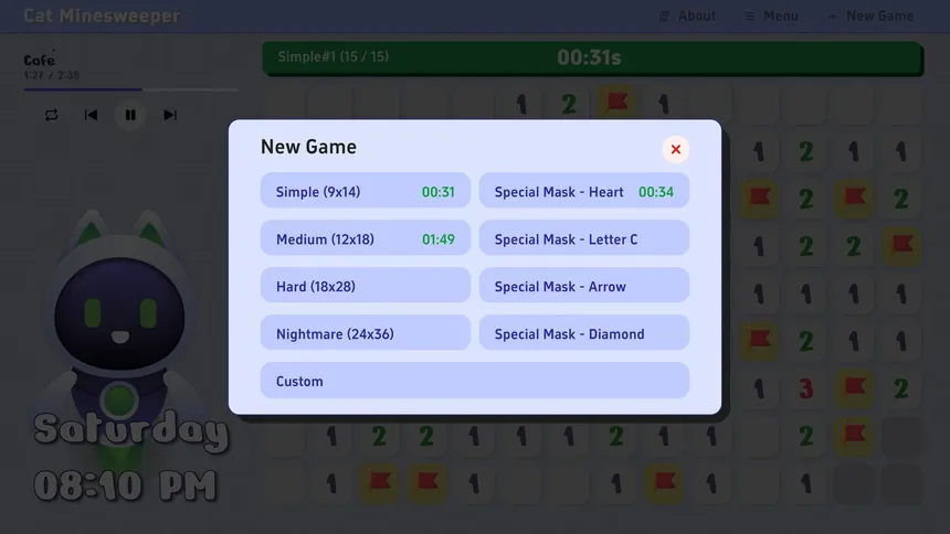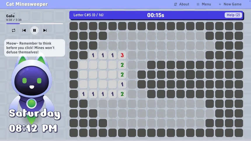 Cat Minesweeper — игра от компании Happy Lunch Time, разработанная для платформы PC. Проект совмещает в себе такие жанры и элементы, как логическая и стратегия. Дополнительно игроки выделяют такие особенности игры, как казуальная игра, головоломка, настольная с полем и стратегия. Игра рассчитана на одиночное прохождение, многопользовательские режимы не предусмотрены.