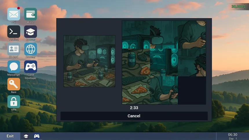 Цифровой симулятор жизни. Работай за своим ПК, зарабатывай деньги, оплачивай счета, инвестируй, строй компании или выбирай рискованные пути. Деньги дают власть, но риск всегда ведёт к последствиям - безопасных решений не существует.