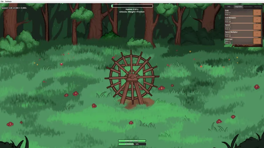 A relaxing incremental game about spinning a wheel. Use your mouse movement to build momentum and set the wheel in motion. Spend your earnings on upgrades to improve the wheel, spin faster, and earn more money. When progress slows, purchase permanent upgrades through the prestige system.