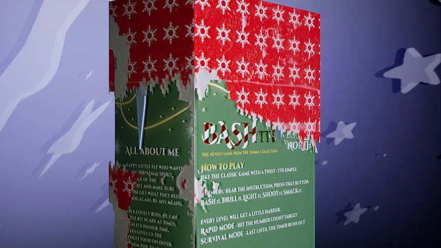 BASH IT! is a festive nod to the classic retro toy, where players must "Shoot it!", "Smack it!", "Light it!", "Drill it!", and "Bash it!". But not all is as it seems, as the beginnings of corrupted world is unveiled.
