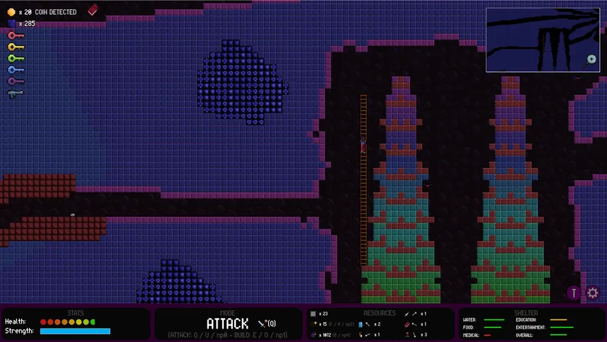Descend into a vast network of forgotten caves, twisting corridors, ancient ruins, and undiscovered terrain. As the last hope of humanity, you’ll carve your own path by building and demolishing blocks, battling hostile creatures, and scavenging vital resources.