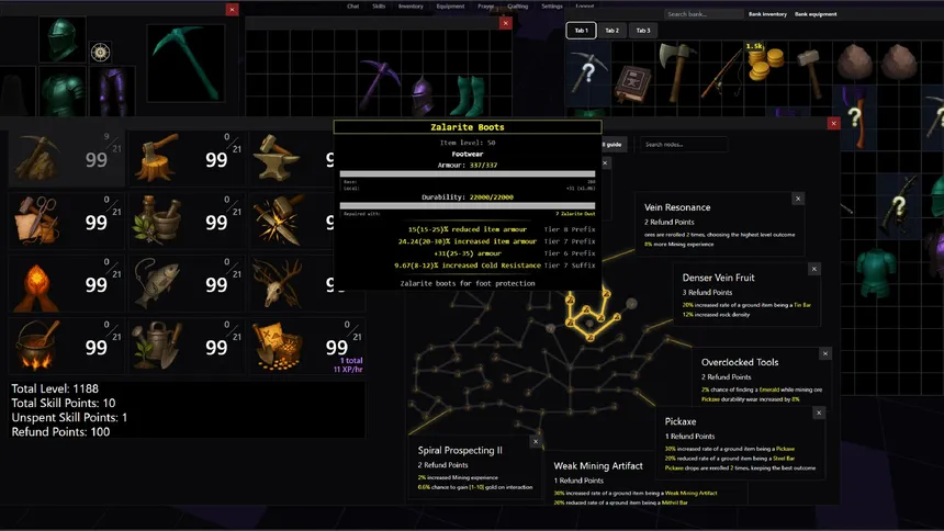 Progress is earned by making smart decisions inside deep shared interlocking systems. Watch the world change as players interact with it. Enjoy the satisfying rhythm of idle and point-and-click gameplay. Explore the depth of classic skill grinding and loot-driven customization.