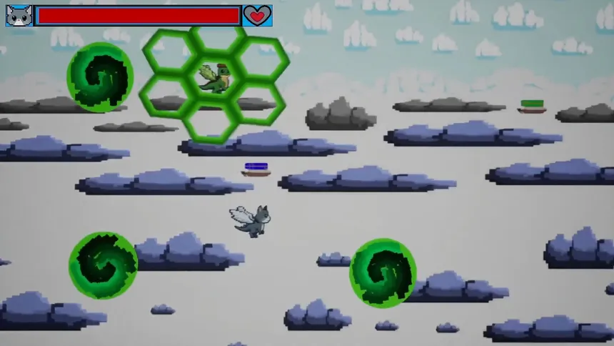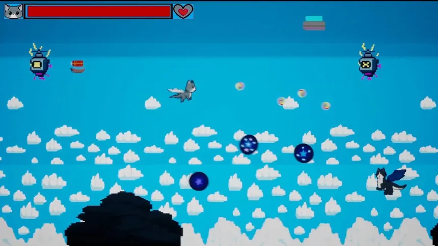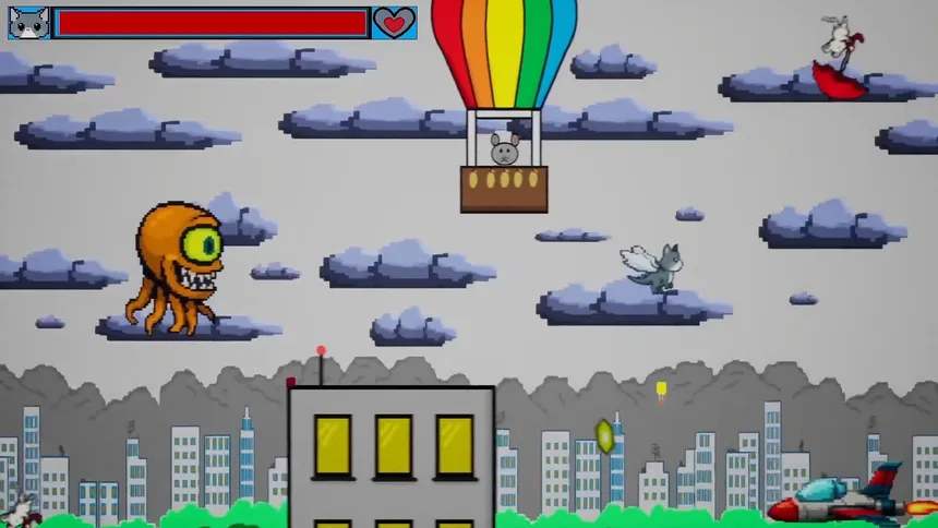 This is an action based flappy game turned up to eleven. In the main arcade mode the player is unlocked and able to flap around the length of the screen dodging obstacles, fighting enemies and engaging a stage boss at the end of every level. This is a fully flushed out flappy game.