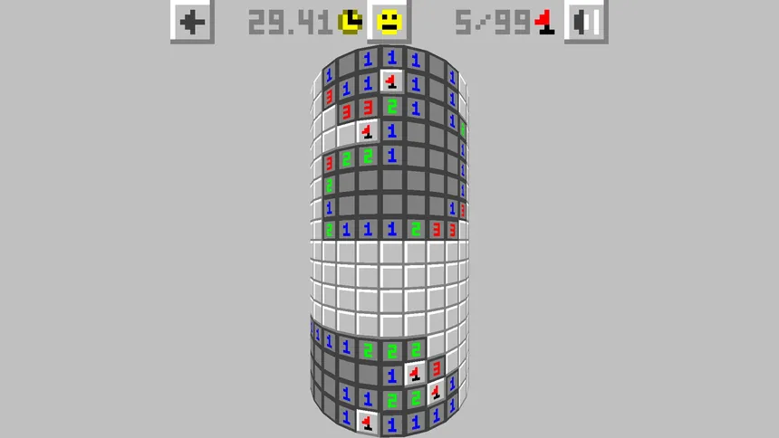Minesweeper Pillar is a twist on the classic minesweeper game. In this unique gaming experience, you'll find yourself in a cylindrical world where mines are hidden within the walls of a rotating pillar.