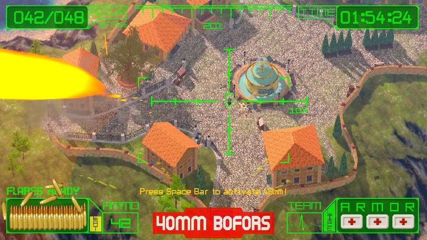 Fire the ferocious guns of an AC-130 as you escort friendlies in this chaotic 90s arcade-inspired on-rails shooter! Decimate waves of enemy soldiers and turn vehicles into scrap with high explosive rounds. Avoid a Game Over with accurate gunfire, carefully timed reloads, and quick bursts of flares!