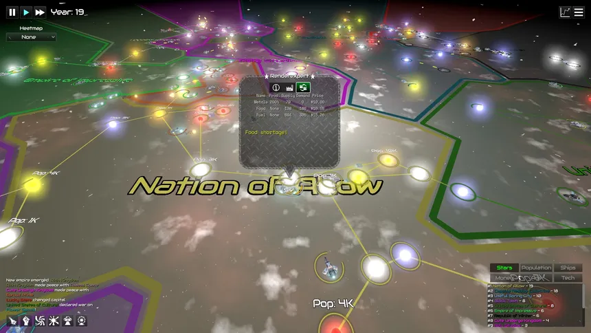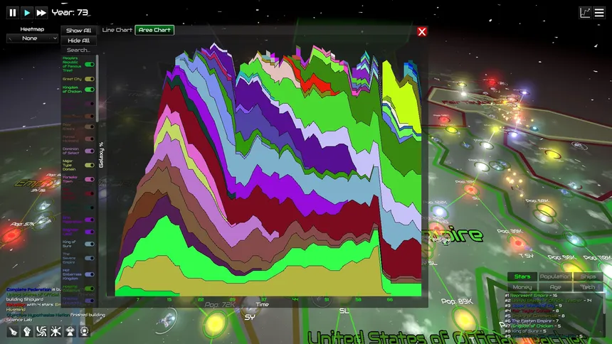 Watch empires rise and fall, or intervene with godly powers, in GalactiWar, a space empire simulation sandbox game.