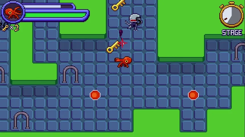 A 2D pixel art arcade roguelike. Kill enemies, collect keys, unlock portals, and race to escape. Transform your octopus into powerful forms. Pick wrong? Fight a boss. Run out of time? No choice left. Every portal is a risk. Every second counts.