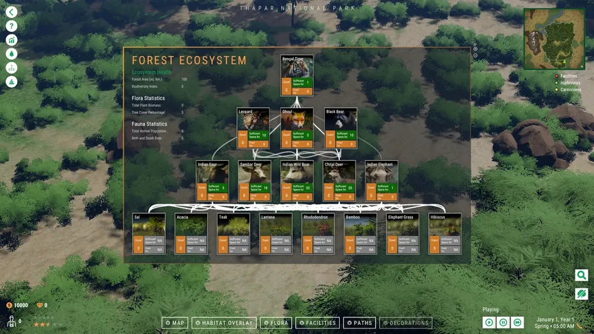 Создайте заповедник в Индии, восстановите среду обитания и делайте фото. Совмещайте заботу об экосистеме с экотуризмом, превращаясь из местного парка в мировую легенду охраны природы.