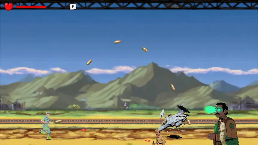 This is a 2D side-scrolling shooter game with 7 levels in total and 3 characters available for players to choose from. Its playtime is about 2 hours. A mysterious alien force blocks global unity. Players take on the role of soldiers to uncover its truth and can upgrade their characters in-game.