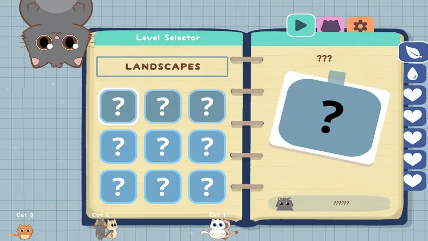 Every artist needs a cat! Drag colors across your canvas to restore famous paintings, optimize your moves to achieve the best score, and experiment with color palettes. Unlock playful cats, dress them with cute hats, and pick them up or enjoy watching them wander in this cozy, relaxing puzzle game.