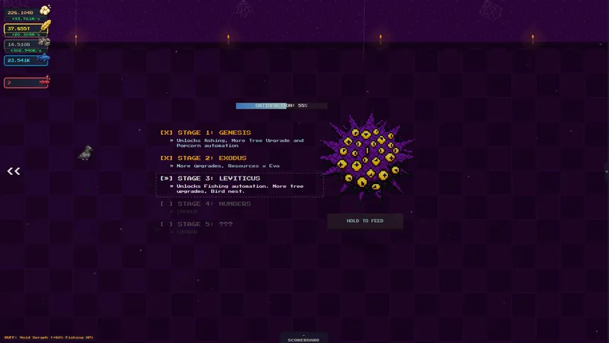 Начните как скромная птичка, ешьте попкорн и эволюционируйте в космическую силу природы! Смесь idle-механик и рогалик-экспедиций. Стройте гнездо, ловите редкую рыбу, сражайтесь с боссами и соревнуйтесь в глобальной таблице лидеров.