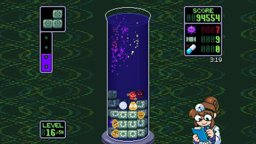 Annalynn MD is a falling block puzzle game that hearkens back to similar titles of the 16-bit era. Twist, turn, and take out germs in three different game modes as you help Annalynn make the world just a little bit healthier.
