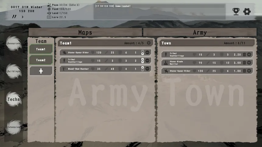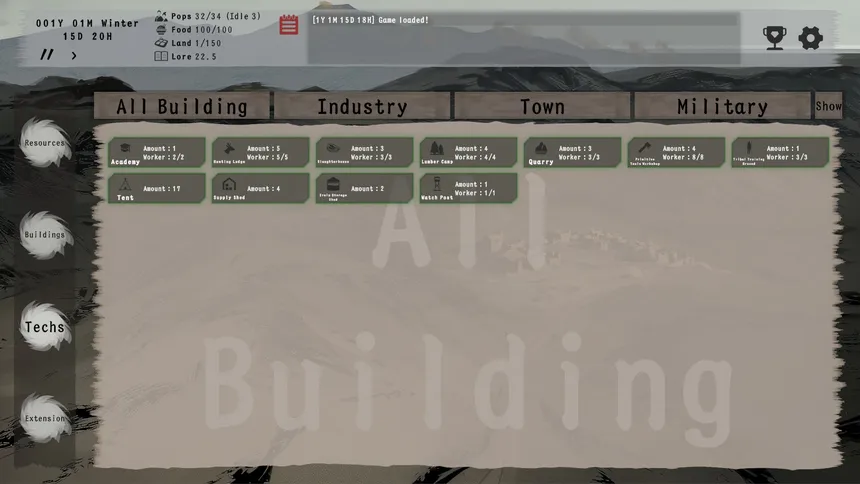A text-driven, click-based game focused on automated production and idle management. Start from a small settlement and expand your world through resource management, technological research, and squad planning in automated turn-based battles.