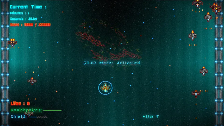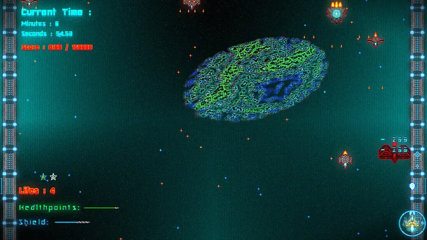 Modern Release of Retro Sci-Fi Shoot'em Up Small Game in Arcade style !!! Take a role as pilot of Your spaceship and feel the 90's arcade games vibes in a new modern release. Defeat intergalactic alien riot and succed in this mission.