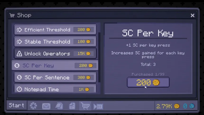 Keycler is a typing-based incremental game. Type words and phrases under time pressure, build efficiency multipliers through precision, automate with worker operators, and prestige to push the system harder.
