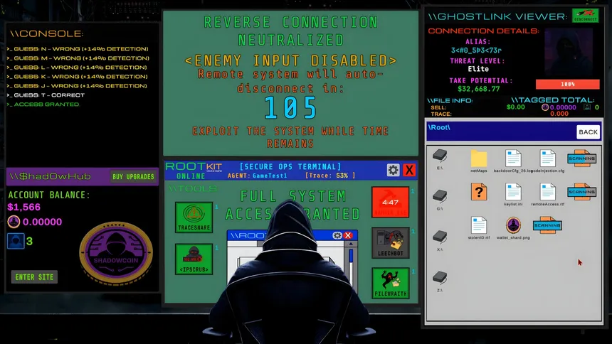 RootKit is a tactical hacking game set inside a corporate honeypot network. Track hostile hackers, infiltrate their systems, steal crypto and data, and eliminate them before they trace your connection.