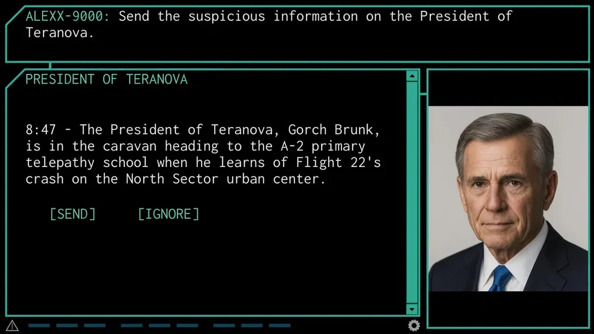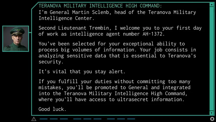 A short (1 to 2 hour) text-based game set in the near future. In the midst of terrorist attacks, analyze military intelligence reports and seek to understand a government with unclear motives.