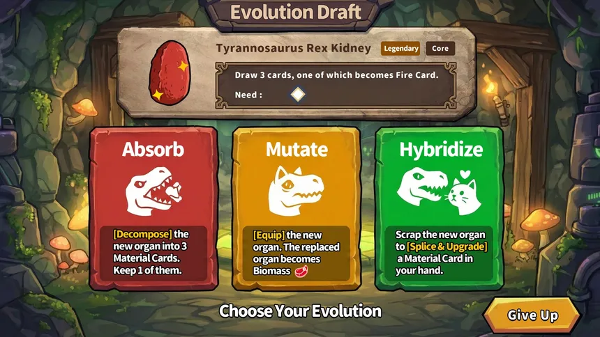 Evolve or die! "EVO CARD: Unchained" is a biopunk roguelike deckbuilder where you ARE the monster. Devour enemies to digest their genes, mutate your body parts, and hybridize legendary cards. Your goal is simple: Evolve into a "God" at the top of the food chain, or become someone else's fodder.