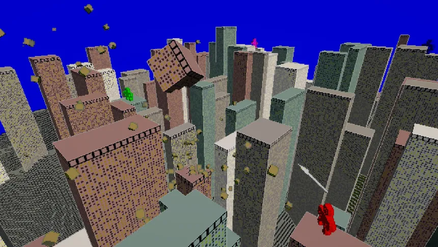 QBased GORILLAS is a retro-inspired 3D turn-based artillery game built around fully destructible voxel buildings and couch-friendly competition.
