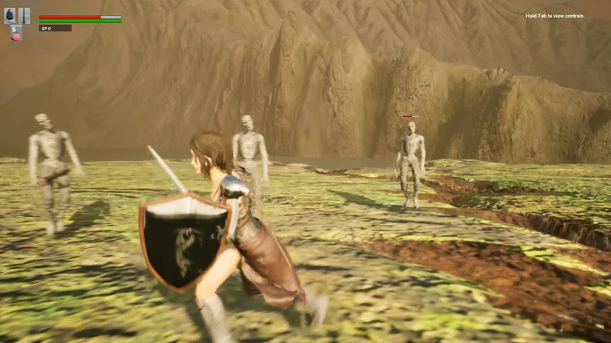 Play as warrior woman in this small medieval themed rpg game. Mission to find big flying dragon and beat it and collect skull. Beware also zombie enemies