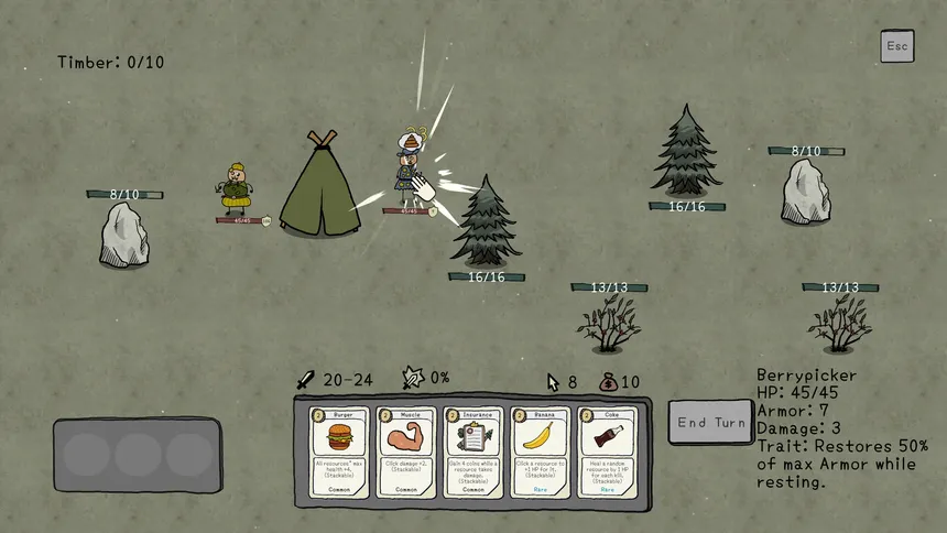 Click Them Off is a hand-drawn roguelike deckbuilder. Conquer a strict hand limit by refreshing the store to stack identical cards, fusing them into unstoppable power. When nasty humans invade to steal your resources, wield three unique weapons to click them off!
