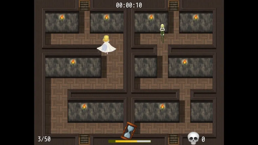 Help the princess and the elf escape the tower together by controlling both at the same time, one with each hand, and defeat the evil stepmother and the Prince Charming!