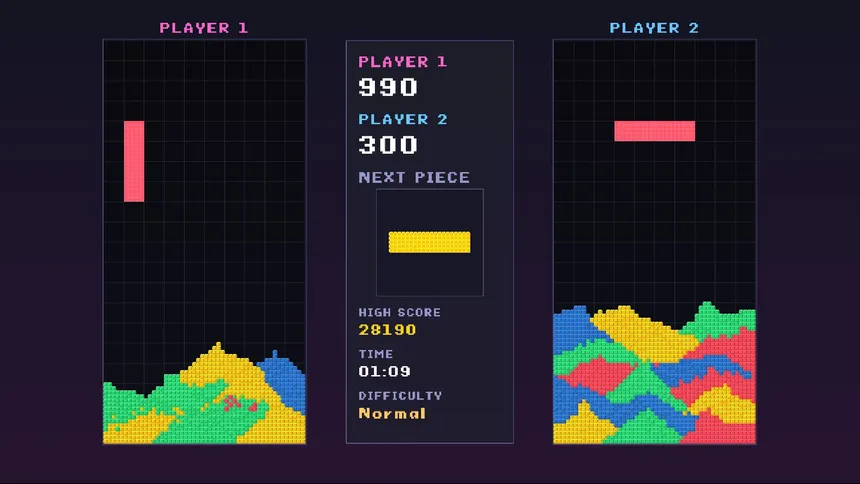 Drop blocks that shatter into gravel particles! Connect same-colored areas across the full board width to clear them and score big. Chain reactions and combos reward strategic thinking in this retro arcade puzzler. Include also two players mode.