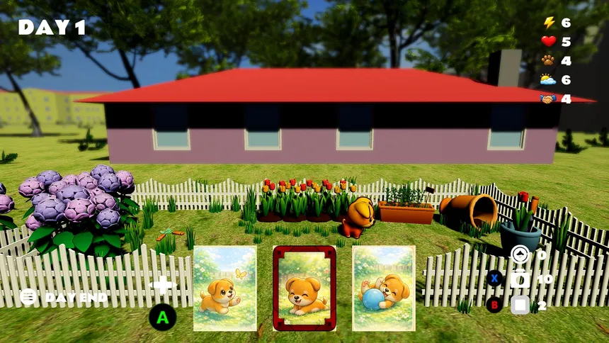 Puppe Yerde is a calm, casual game where you spend seven days with a small puppy in a quiet garden. There are no battles or game overs. You simply take photos, earn points based on the puppy’s behavior, and collect unlockable hats. Designed as a gentle, relaxing experience for players of all ages.