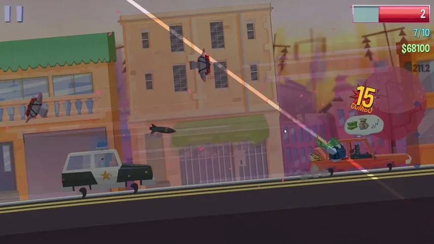 A fast, chaotic action game where you ride through dangerous cities, slow time, and shoot everything that tries to stop you.