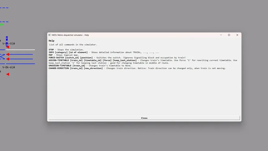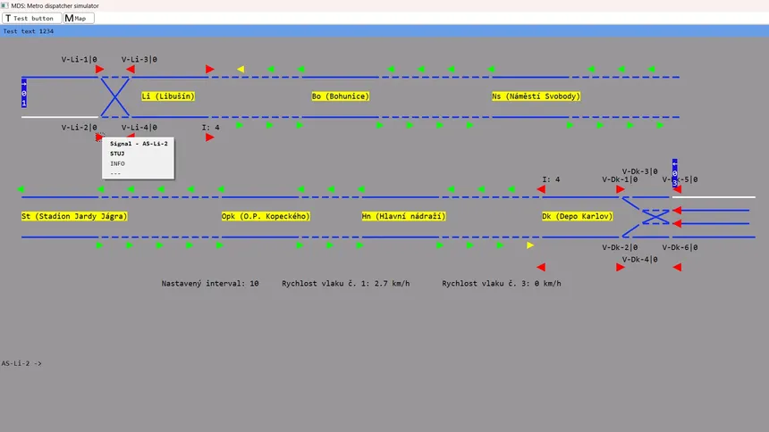 MDS is a detailed simulator of the Prague Metro interlocking system. Take the role of a dispatcher, operate signals, switches, and passenger information system, manage traffic with realistic timetables, or create your own scenarios.
