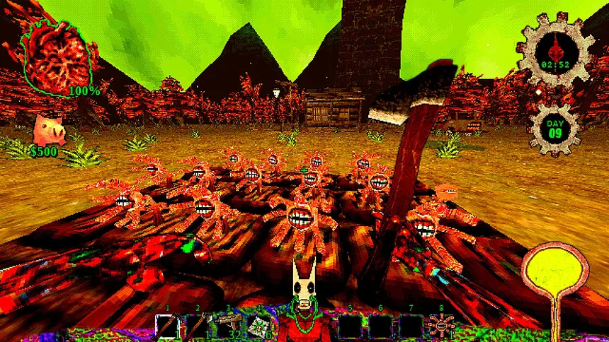 Meatballs Farm is a fast-paced farming game in first person. Farm, fish, and gather by day. Monsters come at night. Pay weekly debts to the King. Miss a payment and you’re dead.