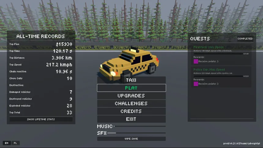 Feel like a true road outlaw! "Brakes? No, thanks!" is a dynamic, voxel arcade game, combining crazy ride with spectacular mayhem. Rack up your Penalty score, beat survival and destruction records. Unlock new vehicles and tracks to intensify the road chaos.