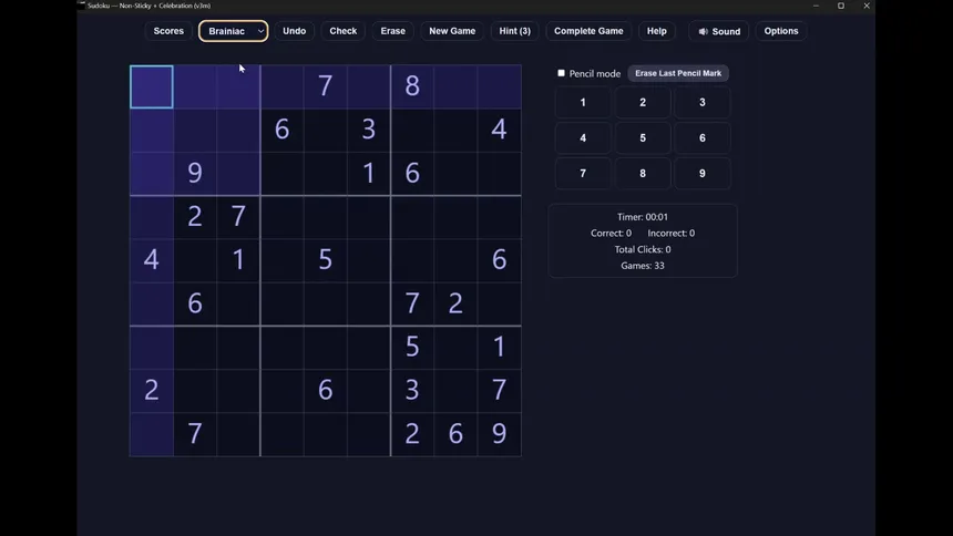 Master Sudoku with 27 Steam Achievements across 6 difficulty levels. Features comprehensive tutorials, detailed stat tracking, multiple player profiles, and cloud saves. From casual beginner to hardcore brainiac - challenge yourself!