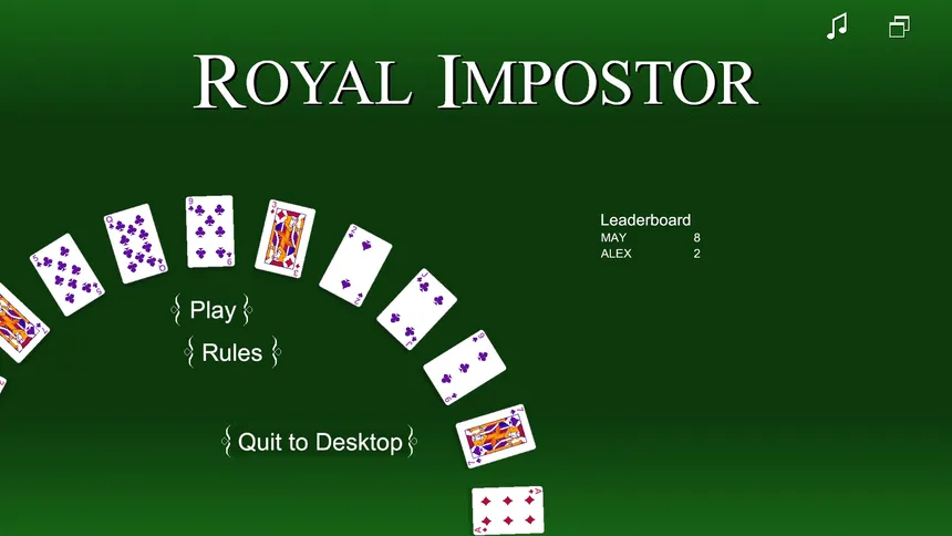 Royal Impostor — игра от компании Maylop Games, разработанная для платформы PC. Проект совмещает в себе такие жанры и элементы, как логическая, карточная и выживание. Дополнительно игроки выделяют такие особенности игры, как поиск предметов, пасьянс, карточная игра и набор очков. Игра рассчитана на одиночное прохождение, многопользовательские режимы не предусмотрены.