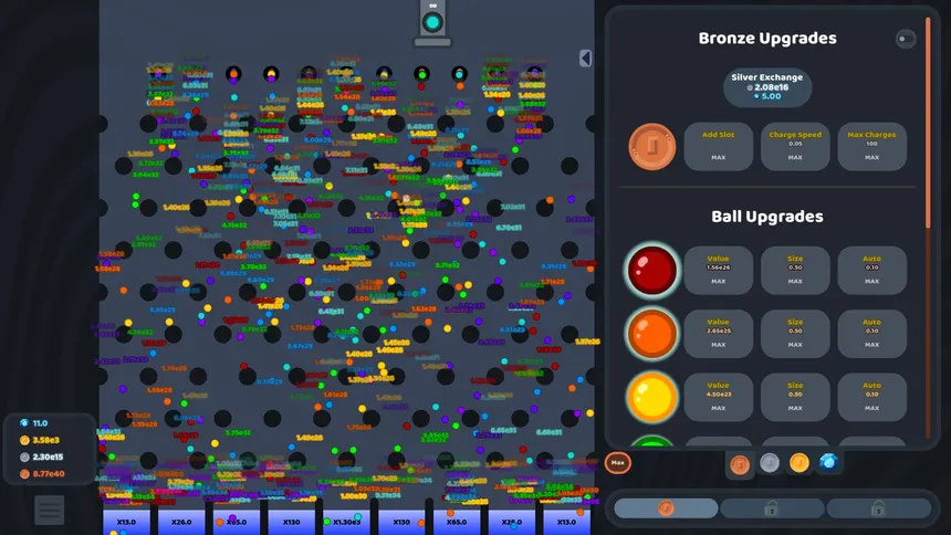 A simple idle game where you drop balls plinko-style to make money. Big number make head go brrrr.