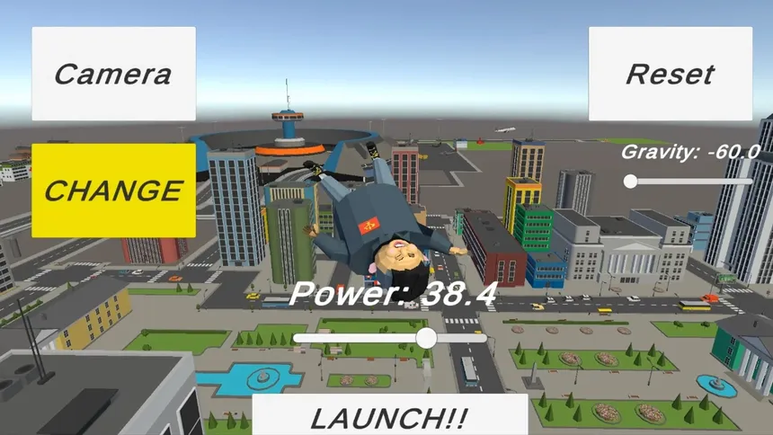 President Launcher is a simple physics-based sandbox game created purely for fun. Tap the launch button to send the president flying into the air, and use sliders to adjust gravity and launch power. There are no goals or rules—just experiment the unpredictable, over-the-top physics simulation.
