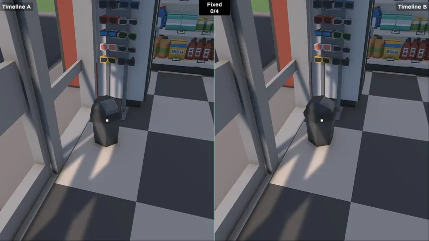 A cozy, relaxing first-person split-screen puzzle mystery. Explore two parallel versions of the same space, spot reality glitches, and decide which version is correct. No timers: just careful observation, deduction, and score-chasing campaigns.