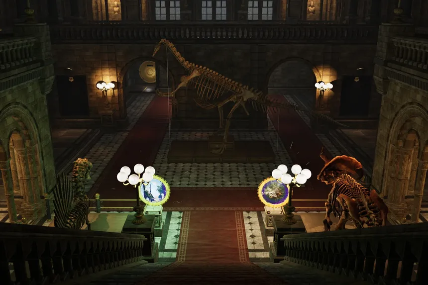 Dino VR Experience is an explorable virtual museum. All areas are consistent with the biomes of the respective dinosaurs, and these biomes are partially explorable. The museum also contains audio and text information to fully immerse the user.