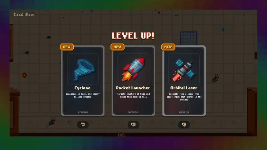 Смазывайте волны все более противных насекомых! Убивайте их, сжигайте огнем или доставайте Орбитальную Смертельную Лазерную установку. Ваша мышь — ваше оружие в этом Bullet Heaven Roguelike, наполненном безумными оружиями, предметами и улучшениями! Теперь идите и хлопайте насекомых 🎾 🐝