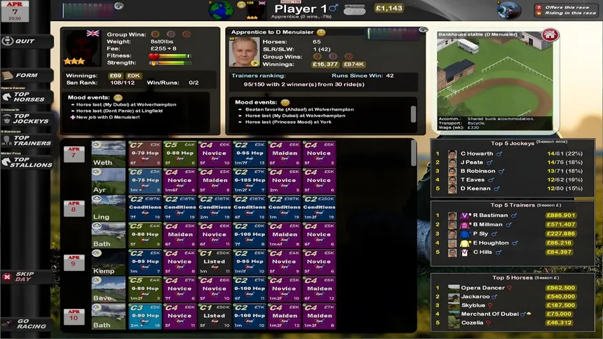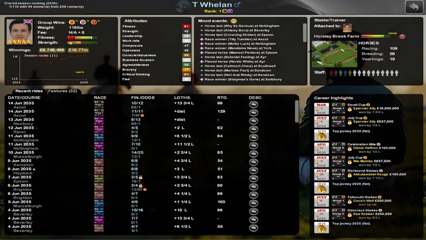 Starters Orders 8 is the most advanced horse racing management sim yet. Fully redesigned menus, new Jockey Career mode, refreshed racecourses, improved race schedules and deeper simulation features including global staff roles, new betting options, realistic breeding, and new international schedules