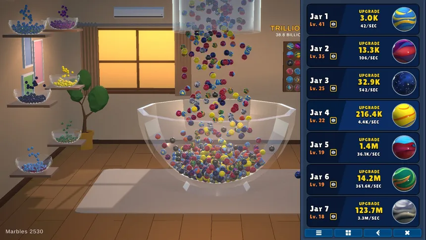 A relaxing incremental game focused on sensorial joy of marbles, soothing sound design, and visually calming simulation. Upgrade systems, earn more marbles, and enjoy collecting all kinds of shiny trinkets.