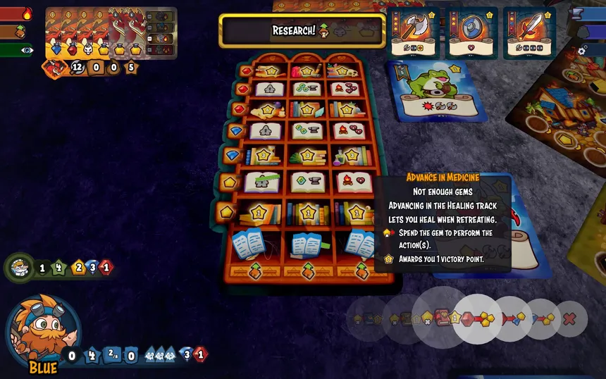 Flame & Forge is a Worker placement, deck-building, push-your-luck full of interesting choices! We're dwarfs marching into a city on flames to raid resources, forge powerful weapons and challenge monsters — and maybe convince them to join your side of the fight!