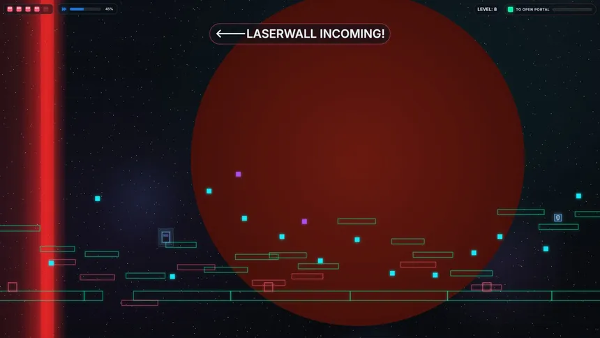 Guide Pollux through the neon depths of the void in this challenging 2D space runner. Survive procedurally generated levels that grow more intense the longer you play. Master your boost, dodge hazards, fight bosses, and explore unique biomes in this pulse-pounding journey from a solo developer.