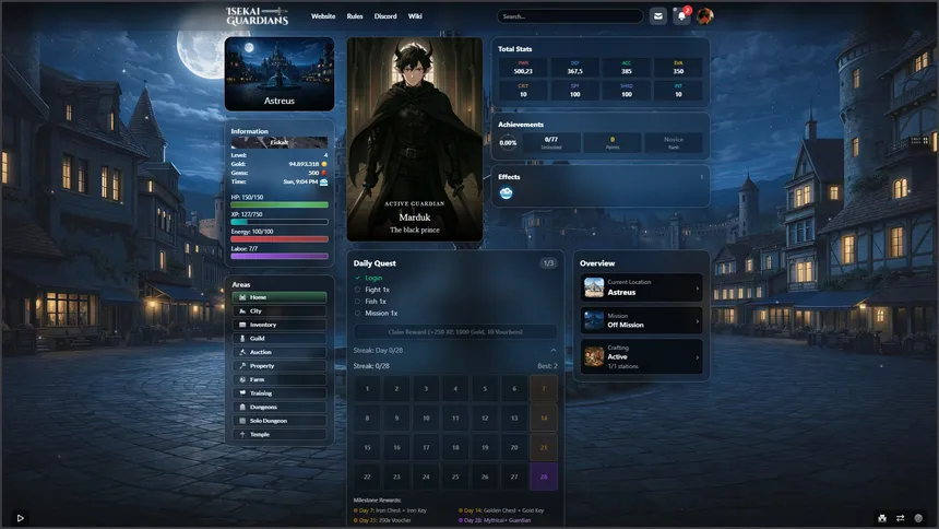 Text-Based MMORPG in an isekai anime fantasy world.