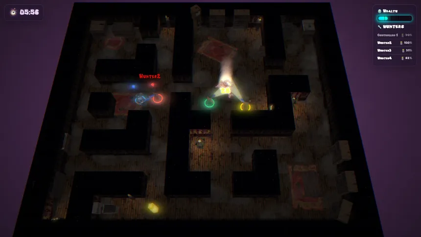 Specter Hideout is a top-down, asymmetrical multiplayer experience for 2 to 5 players. It pits a team of Hunters against one invisible Specter. Whether you are hunting the specter or "haunting the living", every match is a game of cat-and-mouse where one wrong move means the end.