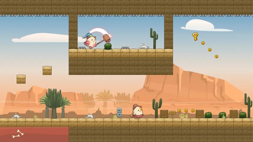 Мяукайте вместе, решайте вместе. Meow Mates — это 2D приключенческая игра, в которой кошачьи друзья должны работать вместе, чтобы преодолеть сложные головоломки и платформенные препятствия.