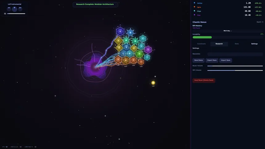 Размещайте магические конструкты вокруг вращающегося космического разлома, выстраивайте цепочки из экзотических энергий и обрушивайте реальность, чтобы стать сильнее в этой глубокой инкрементальной игре.